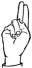 На ћирилици написано БОГДАН ОГЊЕВИЋ састоји се из 13 слова [?]. Исписано ћириличном једноручном азбуком за глувонеме: